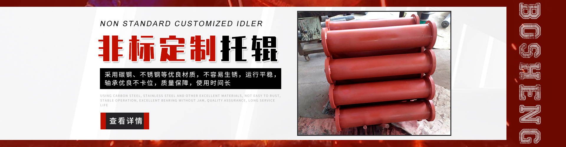 泰安博晟礦山機(jī)械有限公司位于山東泰安新泰市汶南鎮(zhèn)陳糧村。緊鄰京滬、京福、萊新高速公路。公路交通極為方便,環(huán)境優(yōu)美。公司主要生產(chǎn):托輥、托輥配件、托輥支架等皮帶輸送機(jī)配件。歡迎各界商友前來洽談考察。聯(lián)系電話:13954880316.   泰安博晟礦山機(jī)械有限公司采用國際標(biāo)準(zhǔn)設(shè)計(jì)、制造技術(shù),將托輥的設(shè)計(jì)和制造提高到了一個(gè)更高的水平,生產(chǎn)的托輥具有小的旋轉(zhuǎn)阻力,長的壽命,小的維修工作量和高的承載能力。鋼管采用托輥專用高頻焊管,管內(nèi)做去刺處理,圓度控制在特殊的公差范圍之內(nèi)。軸是按標(biāo)準(zhǔn)公差加工的冷拉鋼制造。軸承座采用進(jìn)口冷扎鋼板經(jīng)多次工藝沖壓而成。托輥管和軸承座被自動(dòng)焊接機(jī)械手焊接在一起,形成一個(gè)具有很高強(qiáng)度的整體構(gòu)造。托輥軸承采用國內(nèi)外知名品牌的大游隙深溝球雙密封軸承,使托輥具有理想的靜平衡和動(dòng)平衡,其旋轉(zhuǎn)阻力優(yōu)于國標(biāo)。托輥密封采用綜合國外和國內(nèi)迷宮式密封的特點(diǎn)進(jìn)行了專門設(shè)計(jì),內(nèi)充耐高速高溫和超低溫抗氧化鋰基酯,有效防止雜質(zhì)、水、空氣對(duì)托輥內(nèi)部的侵蝕。   目前我們托輥系列產(chǎn)品有槽形上調(diào)心托輥組、槽形托輥、槽形下調(diào)心托輥組、承載托輥、緩沖托輥、回程托輥組、螺旋托輥、摩擦上調(diào)心托輥組、平行緩沖托輥組、平行上調(diào)心托輥、礦用托輥、煤礦專用托輥、梳型托輥、樹脂托輥、陶瓷托輥、橡膠托輥、錐形托輥、立輥等。規(guī)格:直徑50-219mm;長度190-2600mm。   泰安博晟礦山機(jī)械有限公司竭誠愿與廣大客戶合作,共同發(fā)展開發(fā)新技術(shù)新項(xiàng)目。泰安博晟礦山機(jī)械有限公司秉承